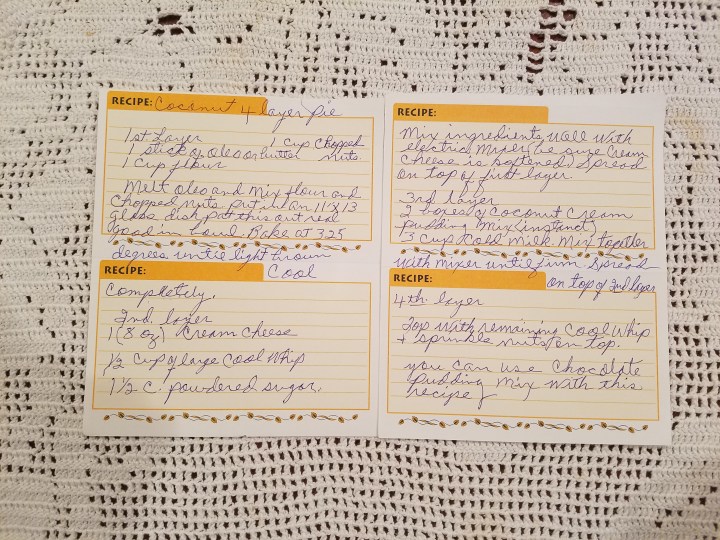 And Mrs. Lela’s Coconut Layer Pie!